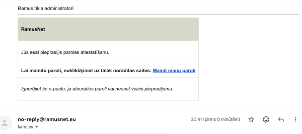 Pārbaudiet savu ienākošo pastu no sūtītāja no-reply@ramusnet.eu.