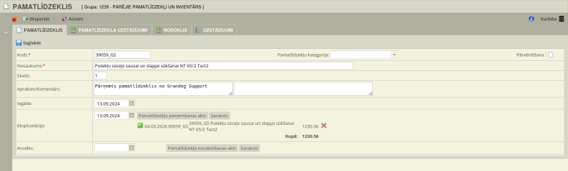- Nolietojuma gadi: Plānotais lietderīgās lietošanas laiks.